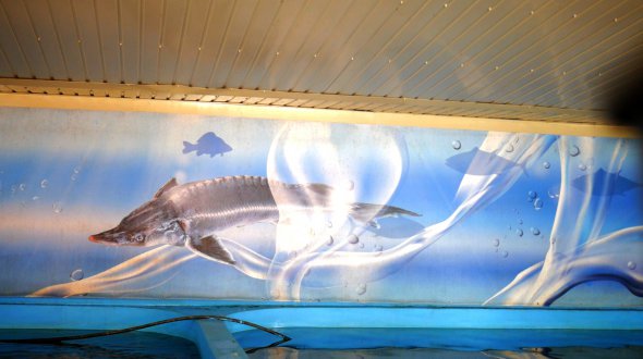 Осетра годую кожних 4 години, сома – 2 рази на день. Малих сомиків кожних 2-4 години. Слідкую, щоб була потрібна температура води. Чистити басейни не потрібно, бо стоять фільтри на механічну і біологічну очистку води.