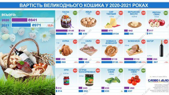 2020 року він коштував середньо 841 грн, а 2021-го обійдеться українцям у 971 грн, пише "Слово і діло". Паска в порівнянні з минулим роком подешевшала зі 140 до 130 грн, тобто на 7,1%. А от ціна на яйця виросла на 95%.