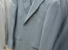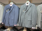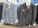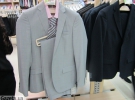 Хлопець приміряє сірий і синій піджаки. Останній більше пасує до його очей. Обидва костюми майже по 2 тис. грн.