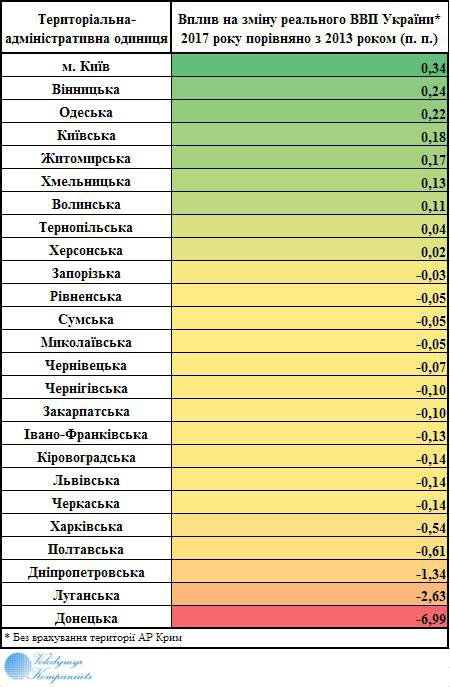 "Тепер можна чітко зрозуміти, як кожна територіальна одиниця вплинула на зміну реального ВВП України без урахування АР Крим", – підсумував Володимир Компанієць.