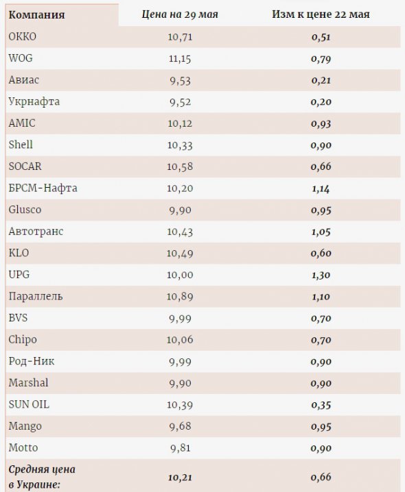 На АЗС ОККО за тиждень ціни зросли на 50 коп./л, KLO - 60 коп./л, WOG - 80 коп./л. Мережі UGP, Glusco, "БРСМ-Нафта" підвищили вартість автогазу на 0,90-1,2 грн/л.