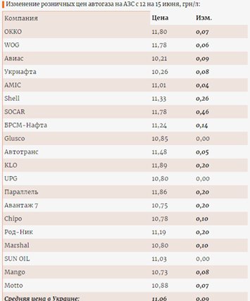За вихідні автогаз на заправках зріс в ціні на 5-45 коп. У середньому коштує 11,06 грн/л.