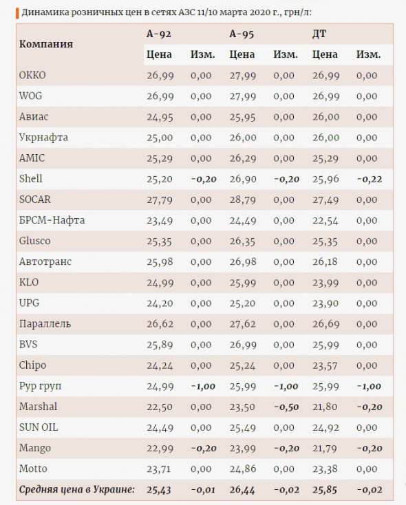 11 березня бензин та дизпаливо на автозаправках подешевшали. Мережі знизили ціни від 20 коп. до 1 грн.