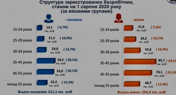 На початок серпня в Україні нараховували 506 тис. безробітних. Серед них найбільше осіб віком 35-45 років.