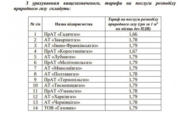 Профільна Нацкомісія схвалила зниження тарифів на розподіл для 14 облгазів. Ціна доставки зменшиться на 5-30% і становитиме 1,66 - 1,79 грн без ПДВ.