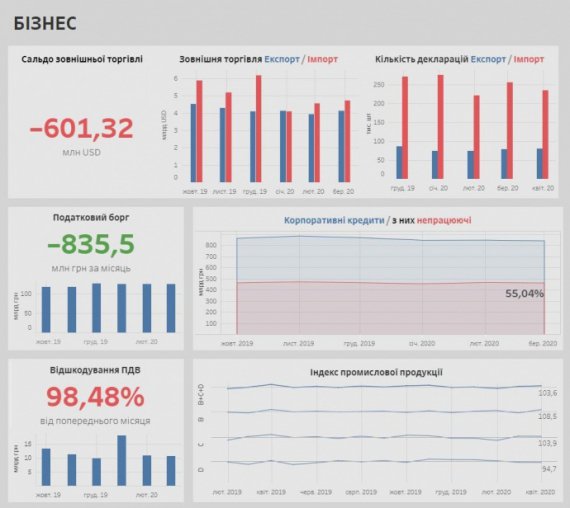 "Ми створили дашборд, присвячений карантину та економіці України. Це, мабуть, найбільш масштабний та докладний дашборд на цю тему. На ньому можна відстежувати вплив карантину на економіку - загалом понад 30 показників, які оновлюються щоденно/щотижнево/щомісячно.