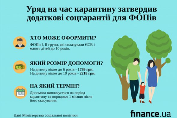 "Це підтримка в умовах карантинних обмежень. Підприємці, які працюють на спрощеній системі оподаткування й належать до 1-ї або 2-ї групи платників єдиного податку, можуть скористатися можливістю отримати фінансову допомогу на кожну дитину віком до 10 років", – заявила міністр соцполітики Марина Лазебна на засіданні уряду.