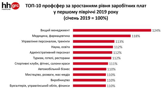 Порівняно з червнем 2018-го найбільше зросли зарплати у сферах "наука, освіта". Там виплати підняли на 53%. У сфері "страхування" стали платити більше на 47%. Зарплата робітничого персоналу та медпрацівників зросла на 32%.