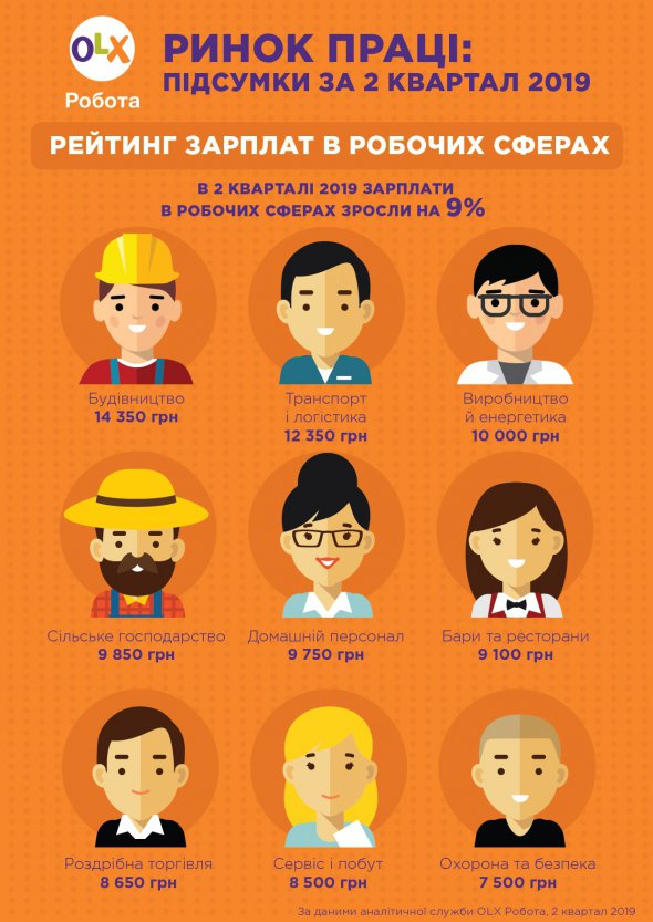 У сфері будівництва зарплати щокварталу зростають на 20%. Для працівників барно-ресторанної сфери виплати підвищили на 17%. Вони у середньому отримували 9100 грн. На 18% зарплату підняли в сільськогосподарській сфері - до 9850 грн. Не змінилися зарплати домашньому персоналу - у середньому 9750 грн у місяць.