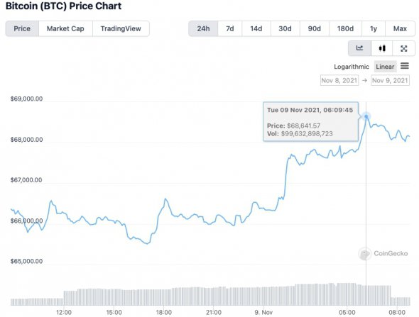 Вартість Bitcoin оновила історичний рекорд і перевищила позначку $68,6 тис. Найбільша криптовалюта світу показала зростання на 340% у порівнянні з листопадом торік.