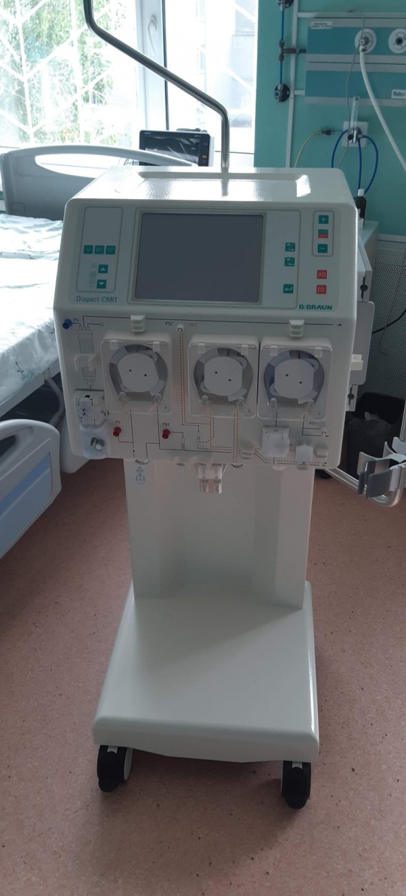 Цей апарат використовуватимуть у відділенні реанімації для проведення гемодіалізу пацієнтам із гострою нирковою недостатністю, поліорганною недостатністю, зокрема, викликаною Covid-19 та інтоксикаціями. Вартість цього обладнання - понад 1,1 млн грн.