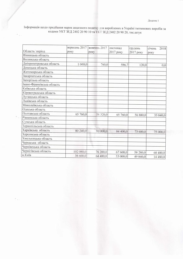 Нагадаємо, що згідно з офіційною відповіддю Державної фіскальної служби на депутатський запит, за період з вересня 2017 р. по січень 2018 р. жодної акцизної марки для сигарет (коды УКТ ЗЕД 2402 2090 10 і 2402 2090 20) не було закуплено підприємствами з Львівської області.