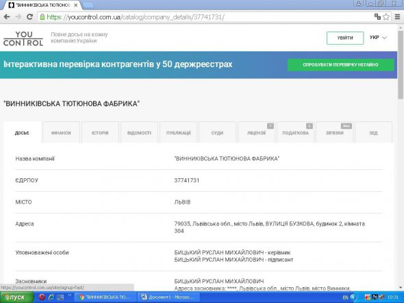 Як випливає з даних Єдиного державного реєстру підприємств і організацій України, "Винниківська тютюнова фабрика" офіційно зареєстрована у Львівській області.