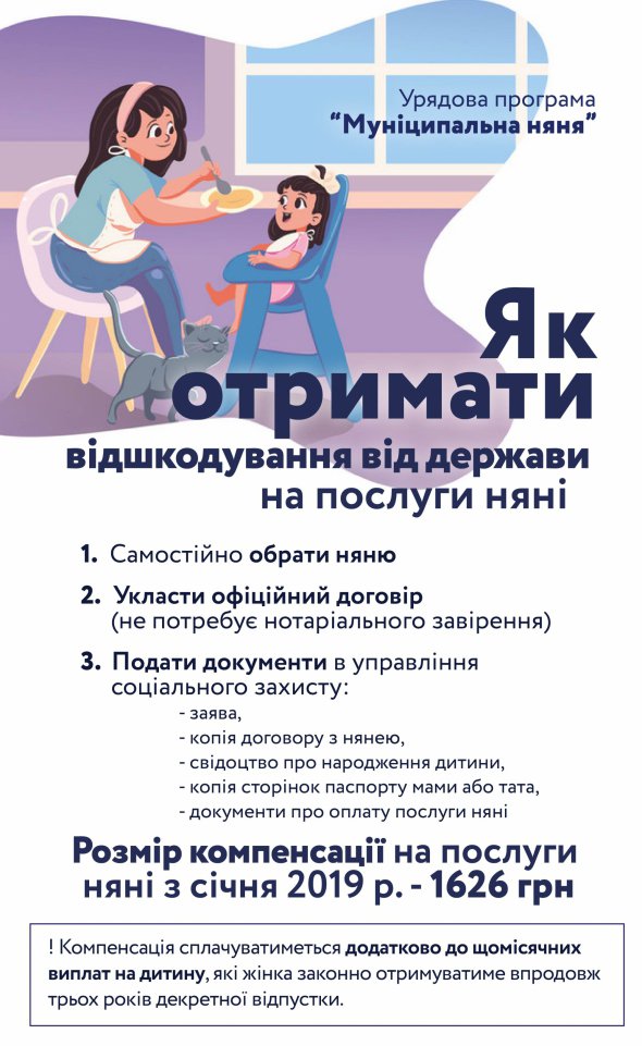 Цьогоріч з 1 січня уряд запустив ще один вид соціальної підтримки – "муніципальна няня". Це додаткова грошова допомога від держави новоспеченим батькам, наголошують у Мінсоцполітики.