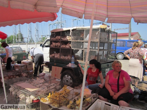 "Найдешевші ціни у дощову погоду. Тоді нам тут стояти недобре. Малі курчата мокнуть і здихають. Тому скидаємо по 4-4,5 гривень за одне. А що ви дивуєтесь цінам? Бензин подорожчав. Нам, щоб курчат і каченят з птахоферми довести, знаєте, які затрати? Зараз люди птицю дуже беруть, бо поросята подорожчали. А своє м'ясо треба. Курка хоч яйце знесе - тримати курей дуже вигідно".
