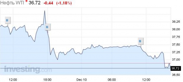 У свою чергу ф'ючерс на нафту WTI здешевшав на 1,18%, до 36,72 дол. за барель.