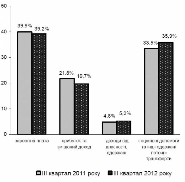 Номінальні доходи населення України у ІІІ кварталі 2012 року зросли на 14,2% порівняно з відповідним періодом попереднього року.