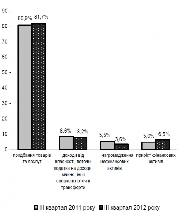Водночас витрати населення у ІІІ кварталі 2012 року порівняно з аналогічним періодом попереднього року збільшились на 14,7%.