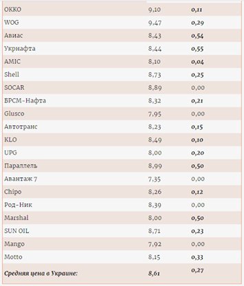 На 5-30 коп. дорожче автогаз почали продавати на заправках AMIC, Shell, "БРСМ-Нафта", "Автотранс", KLO, UPG, Chipo, SUN OIL і Motto.