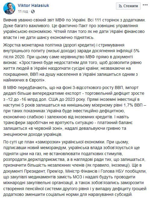 Він розповів, що уважно вивчив всі 111 сторінок свіжого звіту МВФ по Україні.