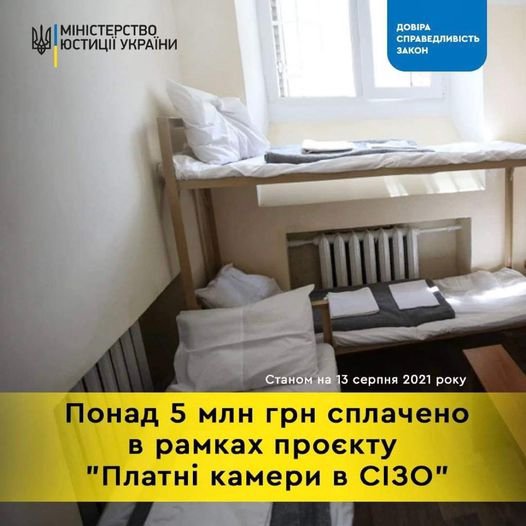Кабінет Міністрів постановою від 22 квітня 2020 року запровадив експериментальний проєкт платної послуги з надання поліпшених побутових умов у слідчих ізоляторах, який триватиме до 31 грудня 2021-го.