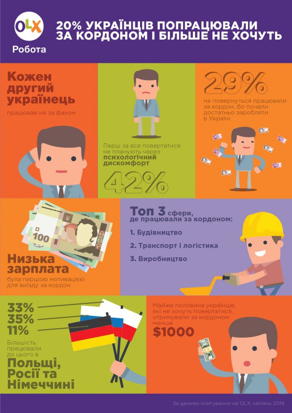 Не хочуть повертатися за кордон переважно через психологічний дискомфорт, пов'язаний ыз переїздом і віддаленістю від рідних. Майже третина опитаних кажуть, що необхідність працювати за кордоном зникла. Ще 16% скаржаться на дороге харчування та проживання під час роботи у сусідніх країнах. Кожний п'ятий розчарувався роботою за кордоном.