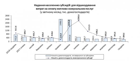 У грудні 2017 року середній розмір субсидії для однієї родини зменшився на 27,2%, тобто становив 993,4 грн. Сума субсидій зменшилася і в цілому за 2017 - аж на 43,3% порівняно з 2016-м.