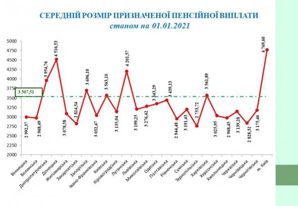 Середній розмір пенсій становить 3,5 тис. грн. Найбільше отримують у Києві. Після нього – Донецька та Луганська області з показниками 4,5 та 4,2 тис. грн відповідно. Найбідніше живуть пенсіонери Тернопільщини, йдеться в довідкових даних Пенсійного фонду України.