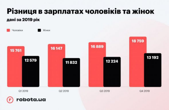 У четвертому кварталі 2019-го жінки у середньому отримували 70% від чоловічої заробітної плати.