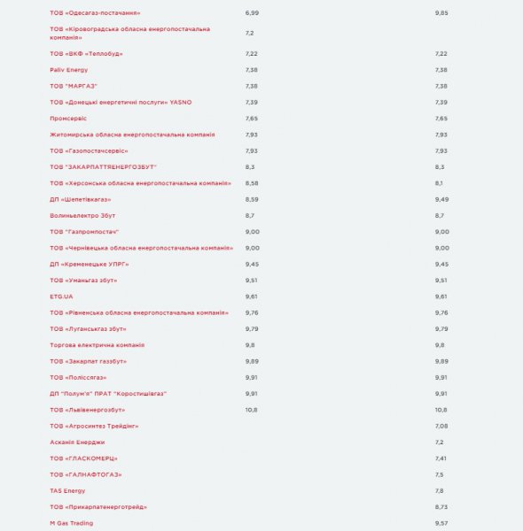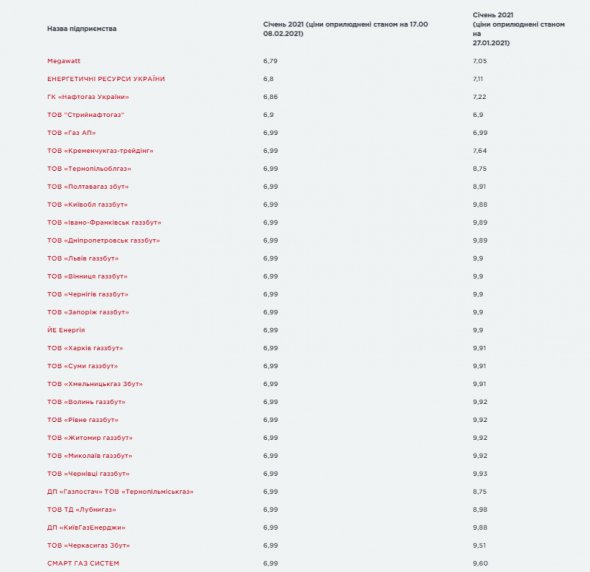 Ще 4 компанії встановили на січень ціну, нижчу від граничної – від 6,79 до 6,90 грн за кубометр.