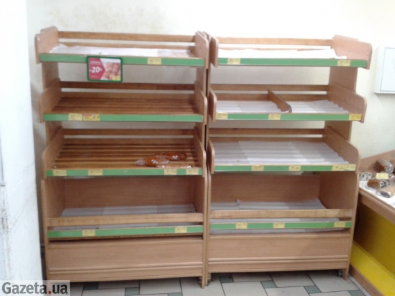 "Я пройшов до цієї "Кишені" три кілометри. Це вже шостий великий магазин за рахунком. Ніде немає ні молока, ні хліба, - каже Олексій Дзеньків. Стоїть у хлібному відділі супермаркету "Велика Кишеня" на вулиці Чорнобильській у Києві. У руках тримає плетену булку виробництва магазину із цінником 8 грн. - Це все, що із хлібного встиг взяти. На полиці лежав лаваш, але якась жіночка переді мною його схопила. Довелося купувати дорогу булку".