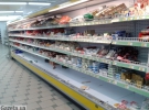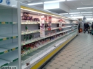 Через це автомобілі із харчами не доїхали до супермаркетів і магазинів. Вже у суботу зранку там не було хлібобулочної продукції, а у неділю зникли молокопродукти.