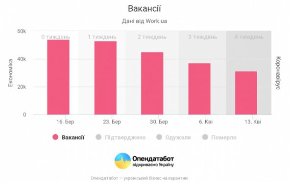 Загальна кількість вакансій скоротилася на 25%, передає "Опендатабот".