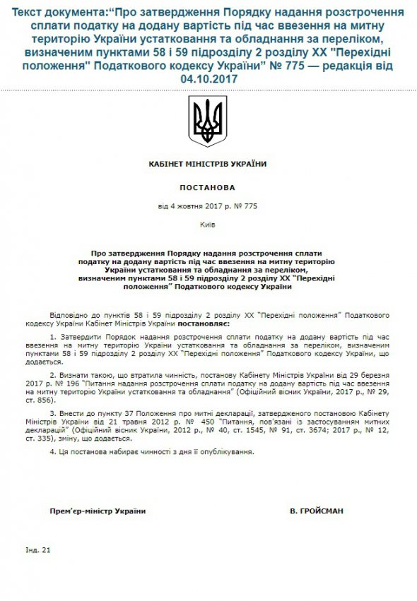 Уряд нарешті запустив впровадження норми, що спростить процедуру отримання розстрочення сплати ПДВ при ввезені в Україну устаткування та обладнання для деревообробного виробництва. Про це заявив голова Комітету з питань промислової політики та підприємництва Віктор Галасюк.