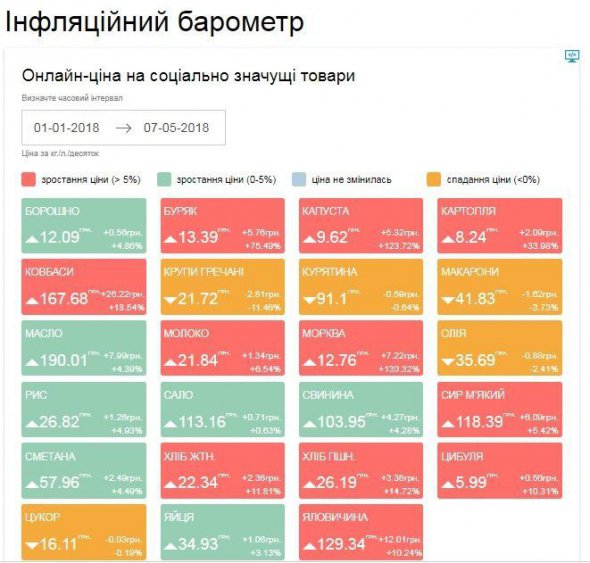 Про це свідчать онлайн показники "Інфляційного барометра" Міністерства економічного розвитку та торгівлі.