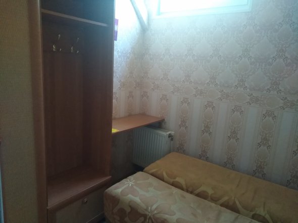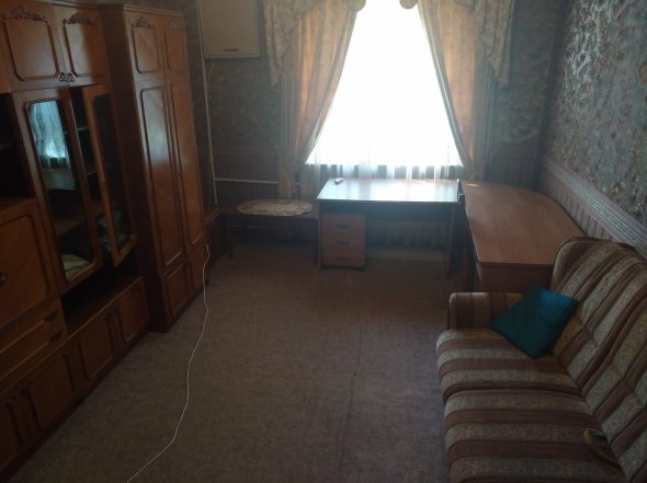 У самій кімнаті розташували ліжко, шафу, поличку, яка слугує столом. Фото в оголошенні не відповідають дійсності, як і ціна. На сайті вказали на тисячу менше. В будинку, окрім квартирантів, живуть родичі власниці та домашні тварини: собака, кіт і черепахи.