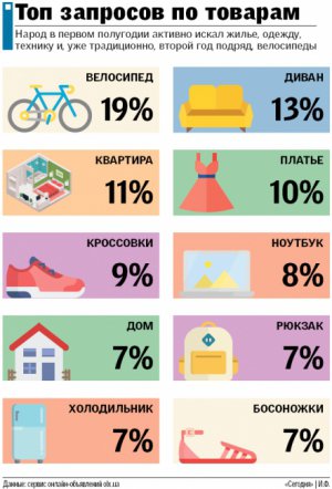 Згідно з даними аналітиків, найбільше українцям знову потрібні велосипеди - їх з січня по липень шукали 550 667 разів. До речі, саме двоколісний друг з 2014 року є беззмінним лідером і не залишає перших позицій рейтингу. Також, як показує статистика, все більше українців цікавляться придбанням житла та його облаштуванням.