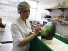"Щоб шоколадка фігурка не розкришилась, її покривають трьома-п'ятьма шарами шоколаду. Його заливають у спеціальні форми, дають охолонути 10-15 хвилин і поливають шоколадом заново", - розповідає працівниця кондитерської Оксана.