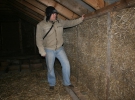 Між подвійним дерев?яним каркасом стін вклали 450 тюків житньої соломи – її не їдять миші. Каркас покрили сіткою, поштукатурили.