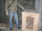 Центральну стіну всередині вимурували з цегли. З однієї її сторони – камін, з іншої пічка. По цеглі провели електрокабелі.