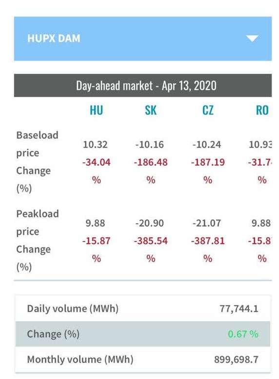 Таку саму динаміку демонструють східноєвропейські країни. Зокрема, від'ємні ціни на 13 квітня встановлені в Чехії та Словаччині, що є нетиповим для робочих днів.