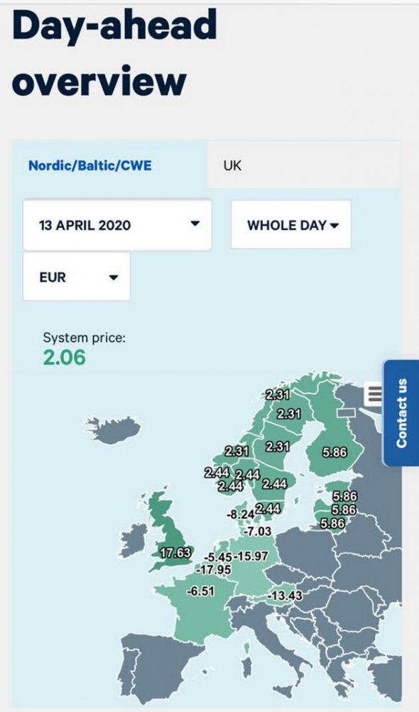 У багатьох європейських країнах ціни на електроенергію на 13 квітня стали від'ємними.