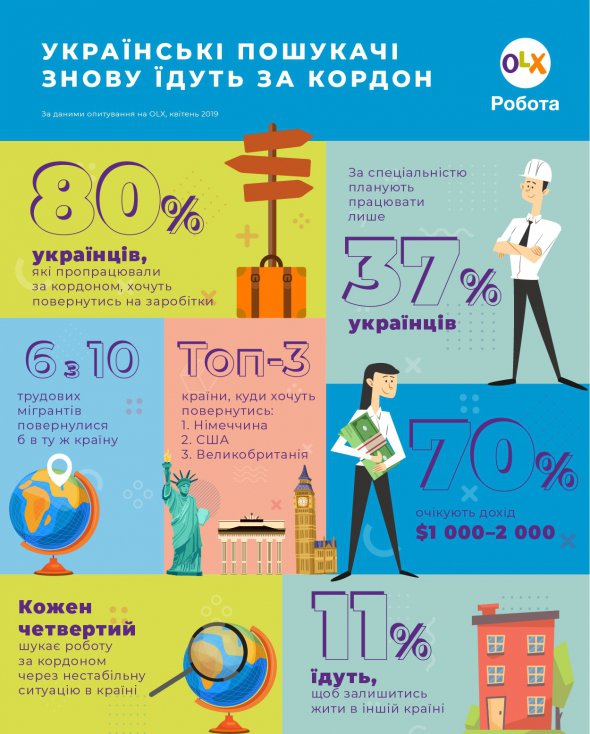 Більшість готова їхати працювати у ті ж країни, де були раніше. Зокрема йдеться про українців, які працювали у Литві, Великобританії та Словаччині. Рейтинг країн, які перевищили всі сподівання українських заробітчан, очолили США та Швеція, пише olx.ua.