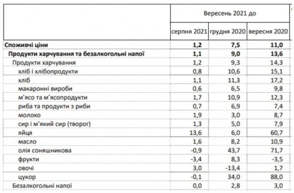 За даними Держстату, середні ціни на продукти в серпні 2021 року в порівнянні із серпнем минулого року зросли 12,2%. Це вище загальної інфляції, яка становила 10,2%.