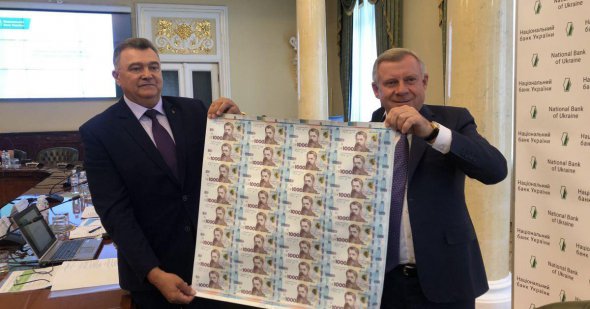"З 25 жовтня 2019 року Національний банк вводить в обіг банкноту номіналом 1000 гривень. За дизайном вона наслідує модернізовану ланку 20,100, 500 гривень", - заявив на прес-брифінгу голова НБУ Яків Смолій.