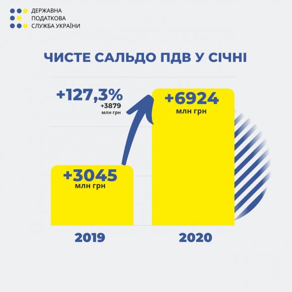 У той же час, у ДПС наголосили, що у січні завдяки системному покращенню адміністрування податків та припиненню незаконних схем все ж вдалося забезпечити чисте сальдо ПДВ у сумі 6 млрд 923,9 млн грн. Це на 127,3%, або на 3 млрд 879 млн грн, більше, ніж за аналогічний період минулого року.