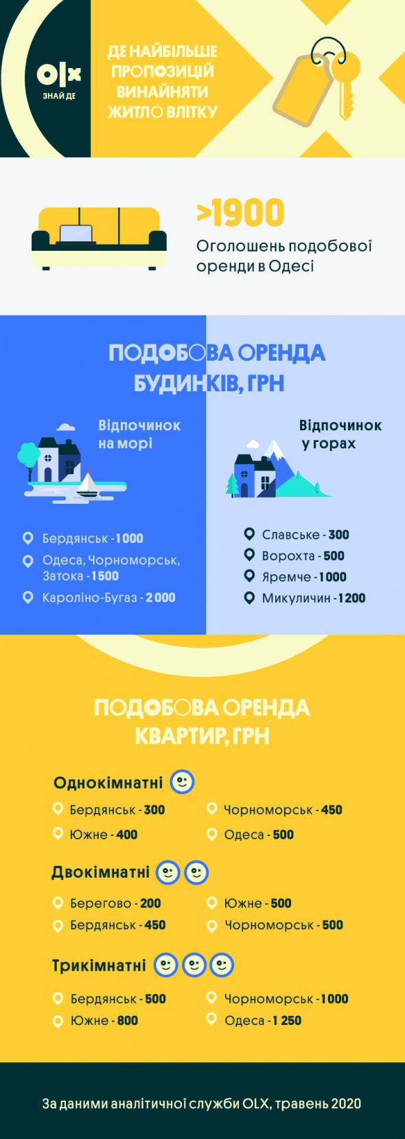 Через поширення коронавірусу українці літній відпочинок планують провести переважно у межах країни. Поки оголошень про здачу в оренду житла влітку найбільше в Одесі.