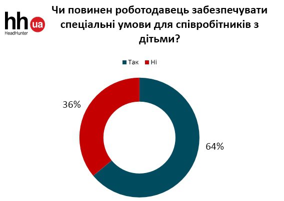 Водночас 64% респондентів стверджують, що потреба у спеціальних умовах для співробітників з дітьми існує, пише HeadHunter.