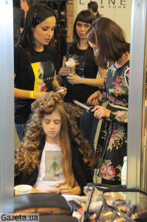 Кореспонденти Gazeta.ua пробралися за лаштунки, щоб довідатися, як готують моделей для показу група візажистів, стилістів і перукарів.