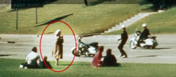 Момент вбивства Джона Кеннеді, 1963 рік. Всі люди біжать в укриття під звуки пострілів, лише одна жінка стоїть і знімає все на камеру. Детективи так і не змогли знайти її, а у справі про вбивство вона записана як "Леді Бабуся".